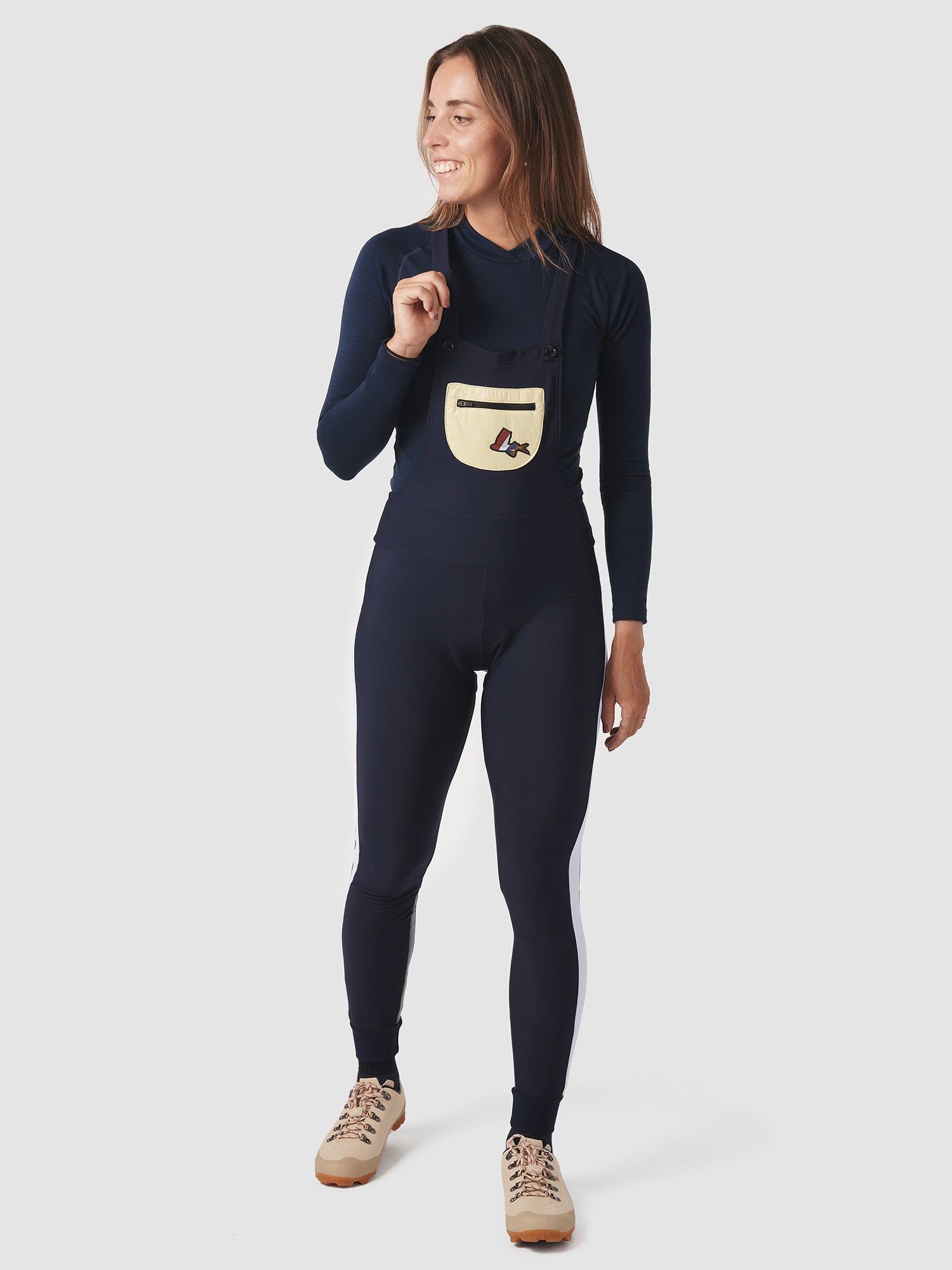Driven by all the roads less ridden, Laetitia combine exceptional cooler weather performance with innovative design and Forever Outsiders spirit. Inspired by classic dungarees and featuring a rear cargo pocket and zipped front pocket, the tights can be worn underneath or on top of a jersey. A brushed microfibre interior provides warmth when the temperature drops and allows sweat to dry rapidly and evaporate, while a water-repellent treatment and the premium female-specific chamois ensures comfort on the longest days.