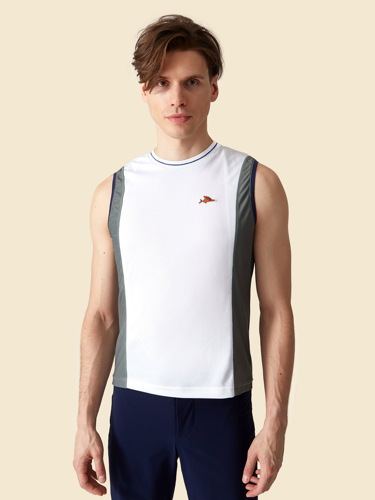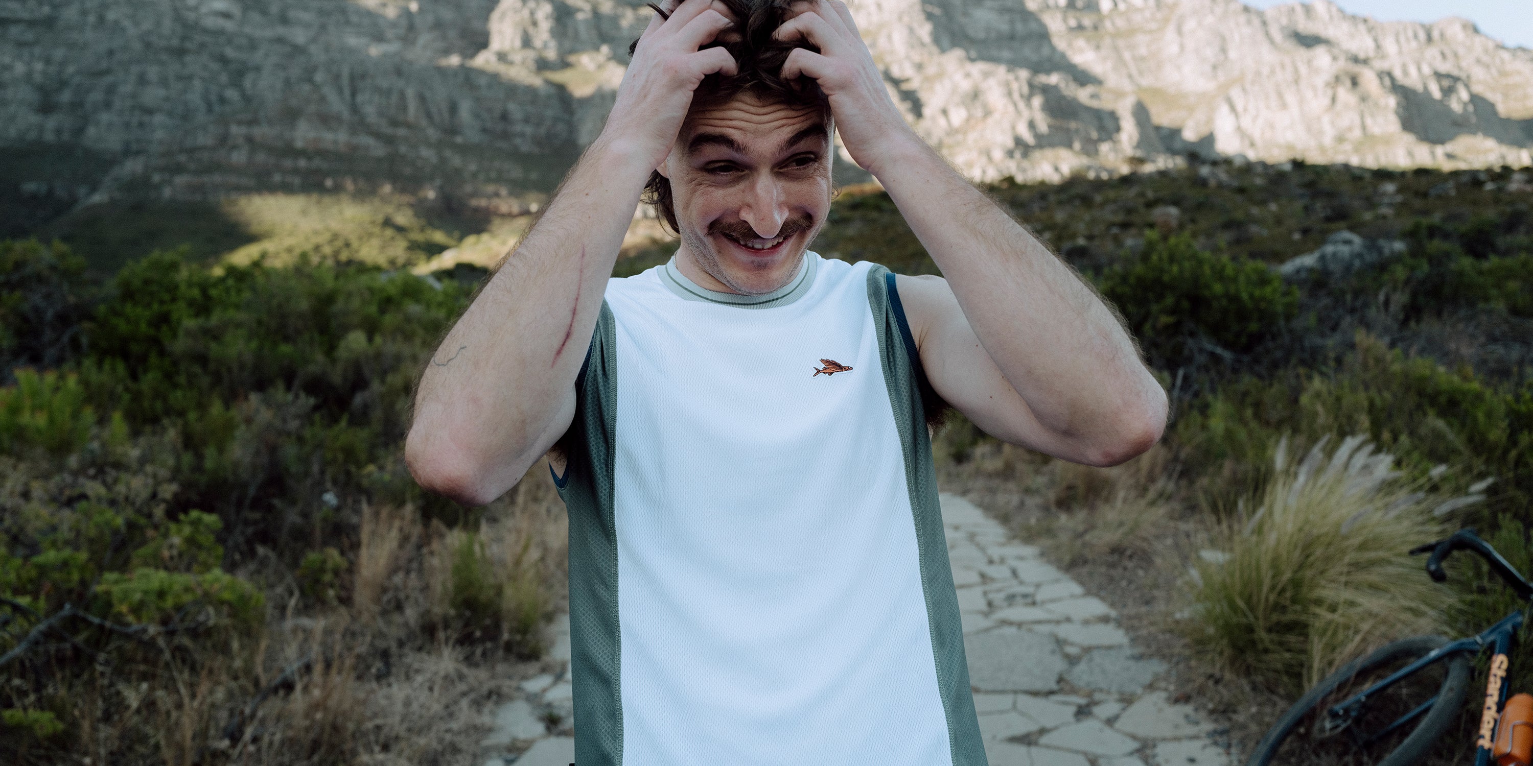 A tank gravel jersey styled for warm weather and unbeaten tracks. Lightweight, fully breathable and made from recycled fabrics, Beatrice is ready to explore in comfort when the sun shines. The sleeveless jersey features our flying fish motif on the chest has a reinforced three-pocket structure on the rear. Whether high in the hills or cruising the coastal path, this is a multi-directional summer jersey for journeys beyond the tarmac.