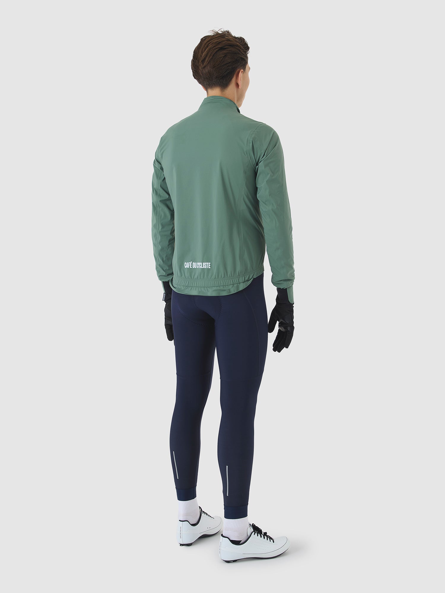 Elasticated and cut long, for a snug on-bike fit.