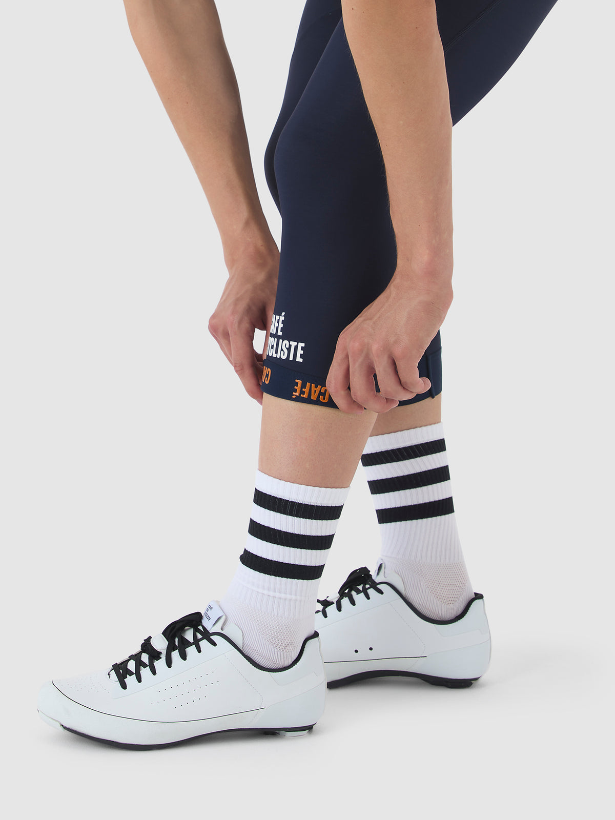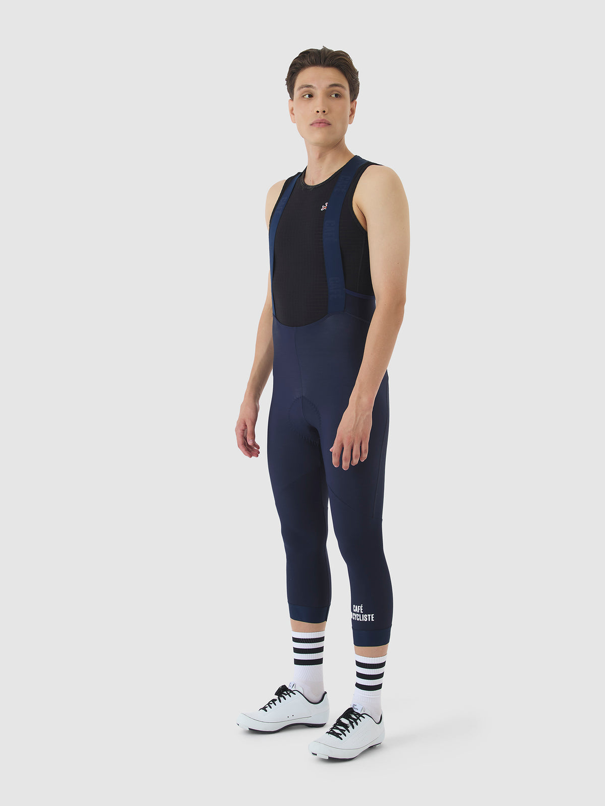 Les larges bretelles élastiques et confortables maintiennent le cuissard en place et présentent des détails Café du Cycliste