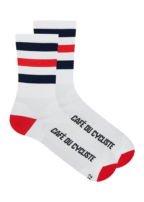 Le design tube-sock inspiré du sport emblématique des années 70 confère à ces chaussettes de cyclisme une touche de style unique. Elles sont ultra-légères et douces contre la peau pour assurer un mélange parfait de forme, de fonction et de performance active. Toutes nos chaussettes de cyclisme sont fabriquées à partir d'un mélange technique spécialement sélectionné, conçu pour être durable, hautement absorbant et à séchage rapide. Un fil anti-ampoules est inclus pour un confort à long terme supplémentaire. et il y a une partie supérieure ventilée pour un contrôle supplémentaire de la température. Ces chaussettes rayées à revers haut sont fabriquées en Italie.