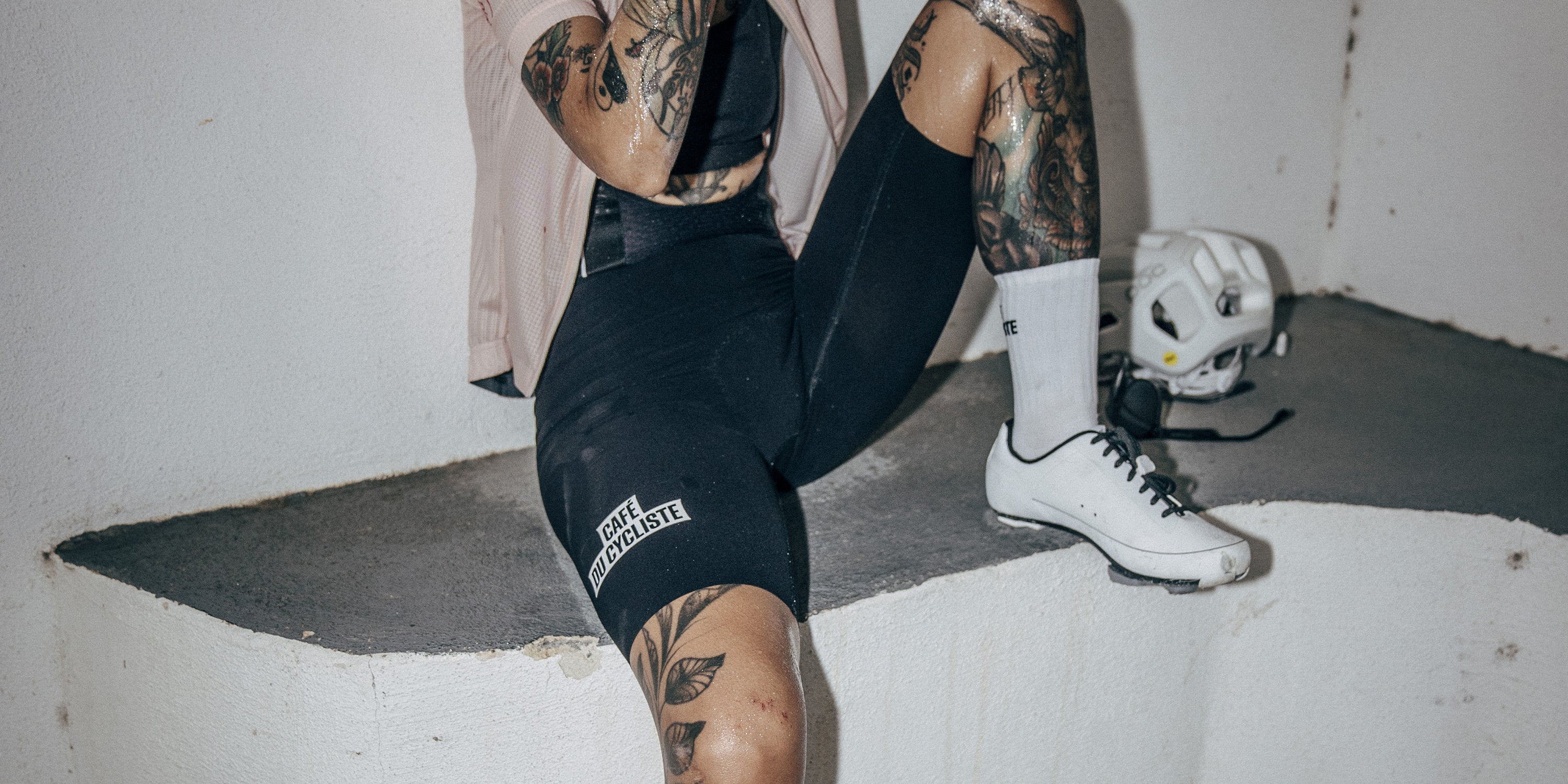 Les larges bretelles élastiques et confortables maintiennent le cuissard en place et présentent des détails Café du Cycliste